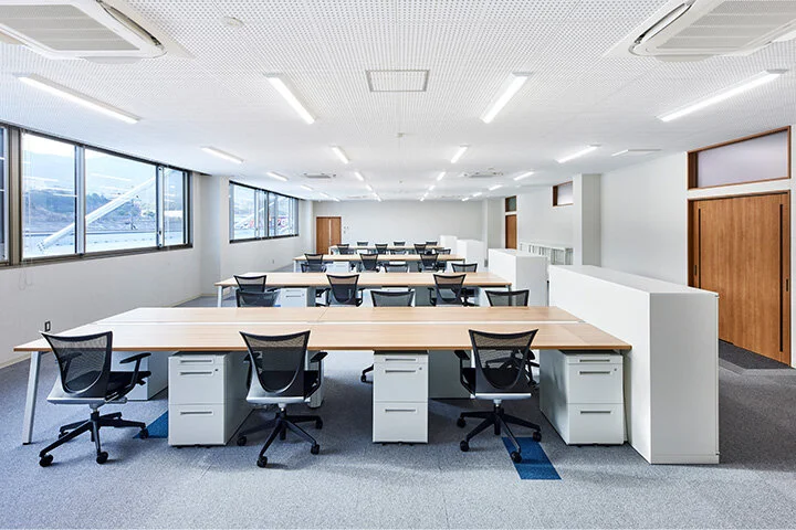 活発な意見交換、効率的な事務作業、クリエイティブな仕事を実現する場を目指した事務室です。